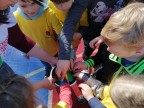 Festivalį baigėme apdovanojimais. Mažiesiems centro vedėja Ilona įteikė Lietuvos mažųjų žaidynių diplomus, pradinukus pavaišino obuoliais. Sušilę, laimingi ir pavargę vaikai grįžo į klases.